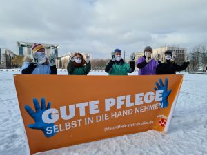 Letztes Jahr haben wir den olympischen Brief übergeben, aber wenn die Politik nicht lesen kann, bekommt sie es jetzt zu hören. Nachdem wir am 12.05. zum Tag der Pflegenden und am 17.06. in einem großen, überregionalen gesundheitspolitischem Aktionstag bereits mit Sprechchören auf unsere Forderungen aufmerksam gemacht haben, werden wir auch dieses Mal laut sein und unsere Stimmen auf die Straßen tragen.