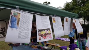 Wir haben Veranstaltungen für die Zivilgesellschaft und Workshops für die Streikenden gemacht. An den Streikposten immer mit dabei war die Wanderausstellung zur Geschichte der bundesweiten Krankenhausbewegung.