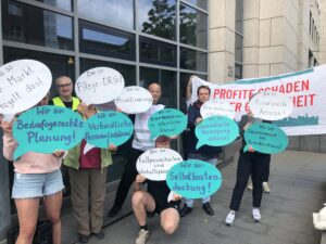 Als Bündnis haben wir diesen Arbeitskampf solidarisch begleitet. Wir haben zu Beginn der Streiks ein Solidaritäts-Camp im Urbanhafen organisiert und uns an diversen Kundgebungen und Demonstrationen beteiligt.